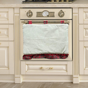 Bellissimo copri forno con volant per abbellire la vostra cucina.