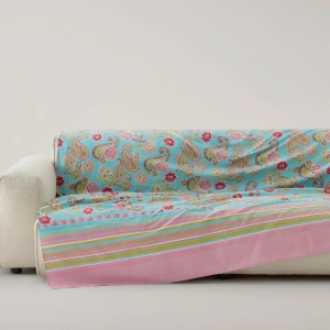 Telo arredo multiuso in puro cotone con stampa indanthrene per mantenere i colori inalterati nel tempo.