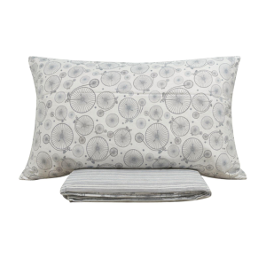 MISURE: lenzuolo sopra 150x300 cm, Lenzuolo sotto con angoli 90x200 cm, federa 52x82 cm.