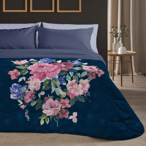 La trapunta puō essere utilizzata in entrambi i lati, da una parte č in fantasia floreale e dallaltra č in tinta unita, si presenta soffice e leggera con una ottima resa di calore; č confezionata in busta riutilizzabile per riporla ; lavabile in lavatrice