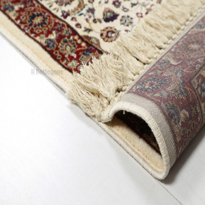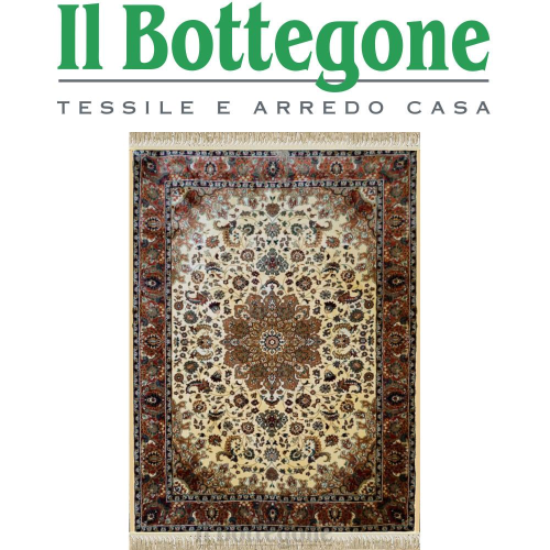 | Tessitura: | Tessuto a pelo corto fantasia orientale. Durante le prime settimane il tappeto in viscosa rilascia del pelo in eccesso dovuto alla tipologia di tessitura. |