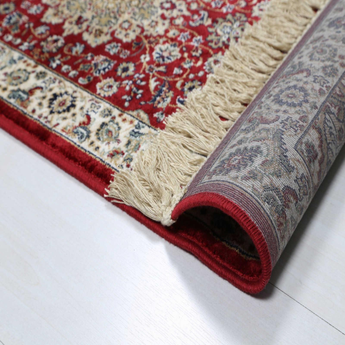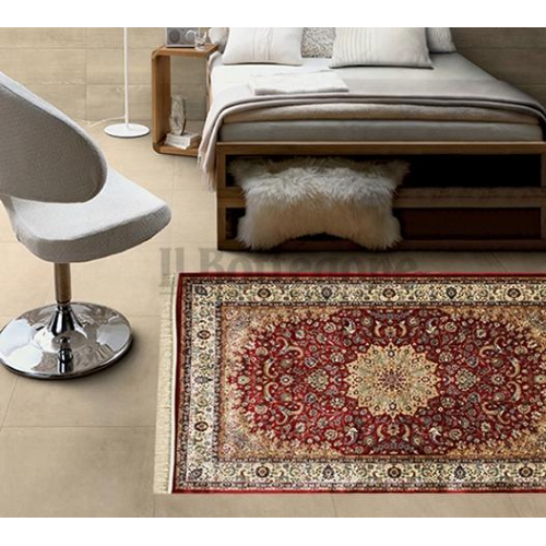 | Tessitura: | Tessuto a pelo corto fantasia orientale. Durante le prime settimane il tappeto in viscosa rilascia del pelo in eccesso dovuto alla tipologia di tessitura. |